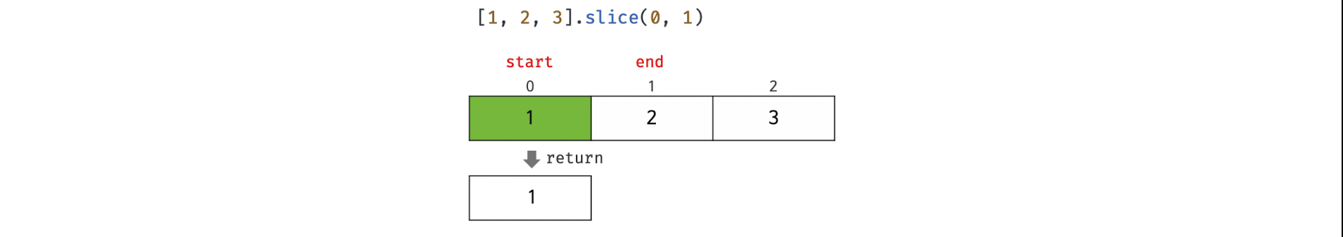 const arr = [1, 2, 3]; // arr[0]부터 arr[1] 이전(arr[1] 미포함)까지 복사하여 반환한다. arr.slice(0, 1); // -> [1] // arr[1]부터 arr[2] 이전(arr[2] 미포함)까지 복사하여 반환한다. arr.slice(1, 2); // -> [2] // 원본은 변경되지 않는다. console.log(arr); // [1, 2, 3]