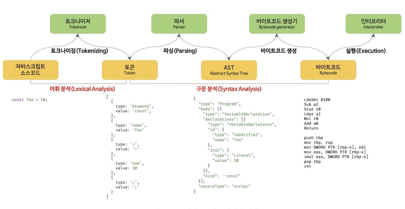위 과정에서 자바스크립트 파싱과 실행 과정을 자세히 살펴보자.