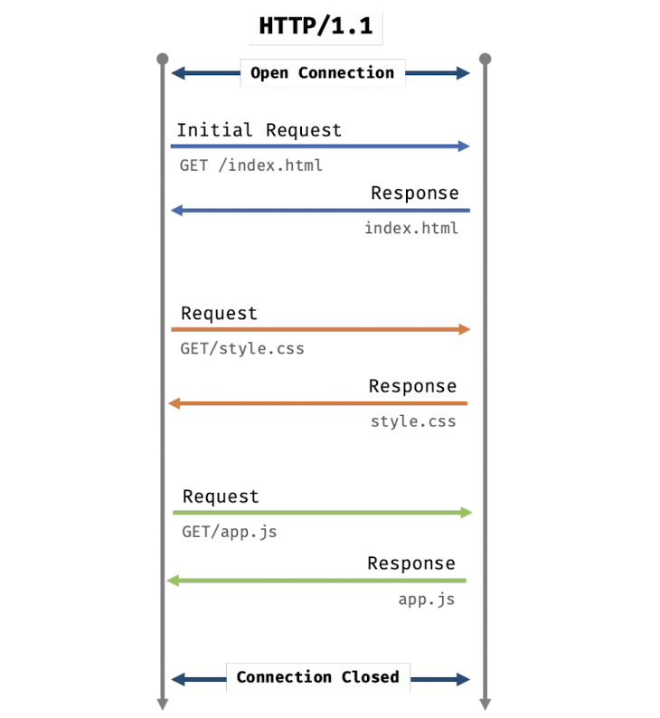 HTTP는 웹에서 브라우저와 서버가 통신하기 위한 프로토콜이다. HTTP/1.1은 기본적으로 커넥션당 하나의 요청과 응답만 처리한다. 따라서 요청할 리소스 개수에 비례하여 응답 시간도 증가하는 단점이 있다.