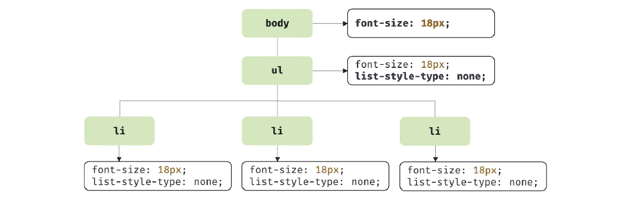 CSSOM은 CSS의 상속을 반영하여 생성된다. 즉, 부모 요소에 적용한 css 프로퍼티는 자식 요소에도 상속된다.