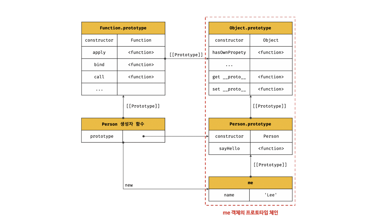 2) 인스턴스의 프로토타입으로 클래스의 prototype 프로퍼티가 가리키는 객체가 설정된다.