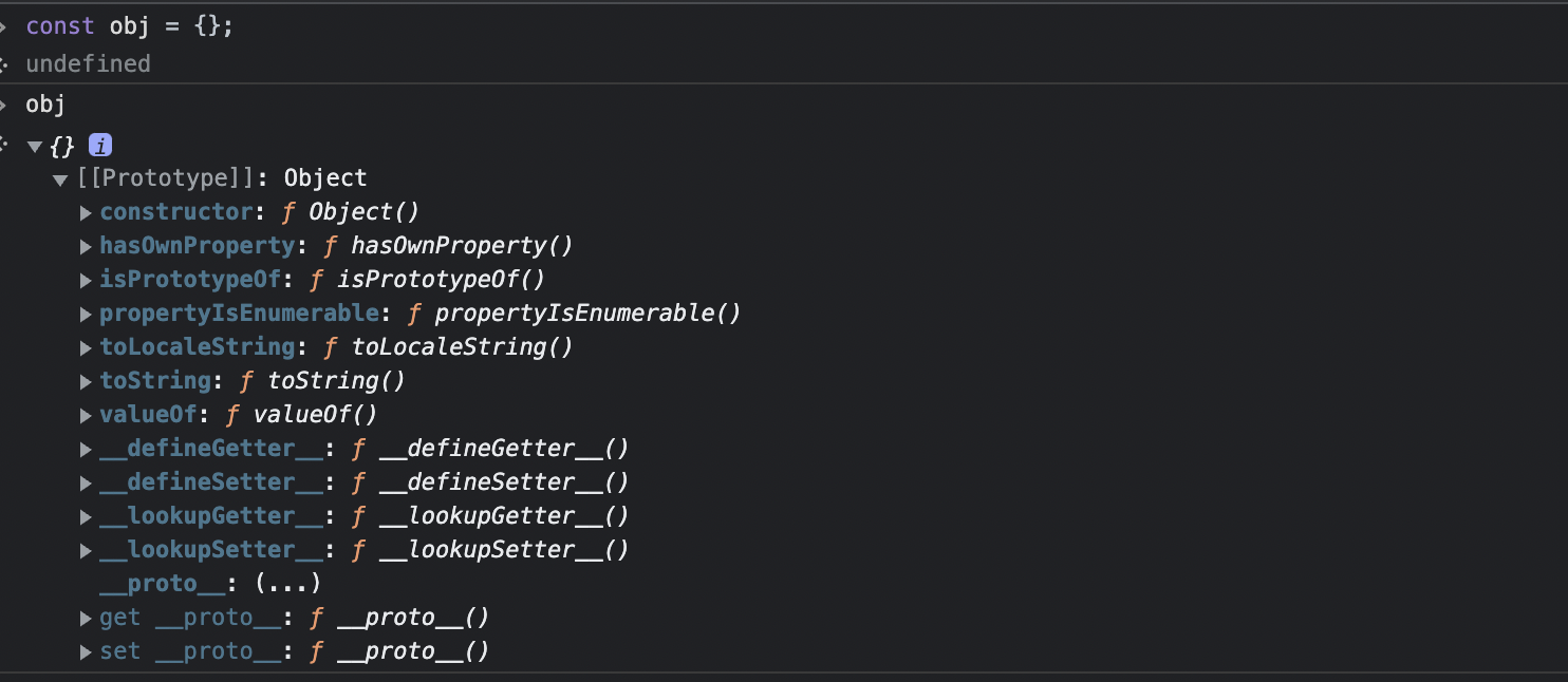 const person = { name: 'Lee' }; // person 객체는 __proto__ 프로퍼티를 소유하지 않는다. console.log(person.hasOwnProperty('__proto__')); // false // __proto__ 프로퍼티는 모든 객체의 프로토타입 객체인 Object.prototype의 접근자 프로퍼티다. console.log(Object.getOwnPropertyDescriptor(Object.prototype, '__proto__')); // {get: ƒ, set: ƒ, enumerable: false, configurable: true} // 모든 객체는 Object.prototype의 접근자 프로퍼티 __proto__를 상속받아 사용할 수 있다. console.log({}.__proto__ === Object.prototype); // true3) __proto__를 통해 프로토타입에 접근하는 이유