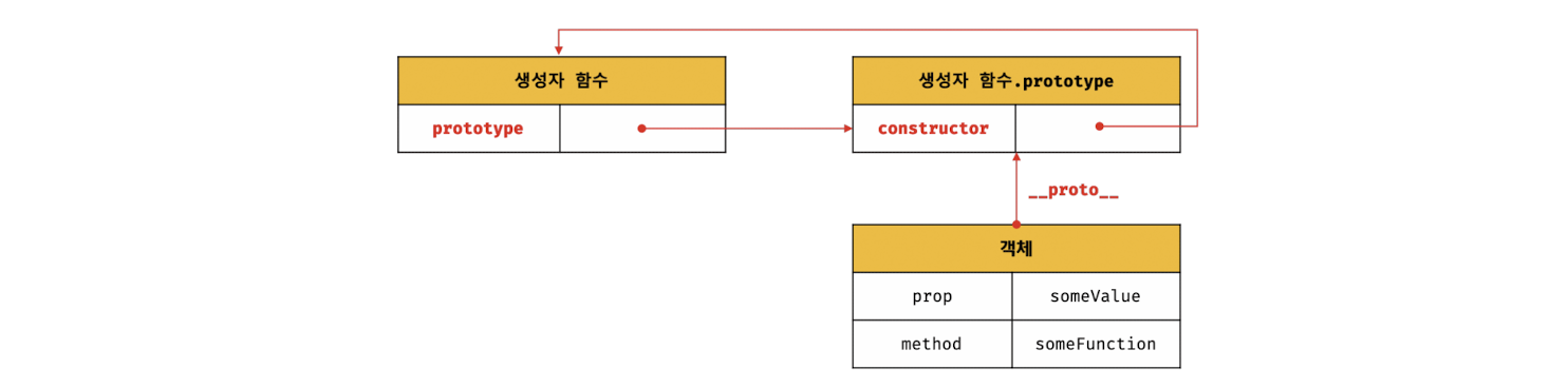 [[prototype]] 내부 슬롯에는 직접 접근할 수 없지만, __proto__접근자 프로퍼티를 통해 자신의 [[prototype]] 내부 슬롯이 가리키는 상위 객체의 프로토타입에 간접적으로 접근할 수 있다. 그리고 이 프로토타입은 자신의 constructor 프로퍼티를 통해 생성자 함수에 접근할 수 있다.