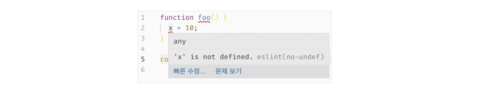function foo() { 'use strict'; x = 10; // ReferenceError: x is not defined } foo();코드의 선두에 'use strict';를 위치시키지 않으면 strict mode가 제대로 동작하지 않는다.