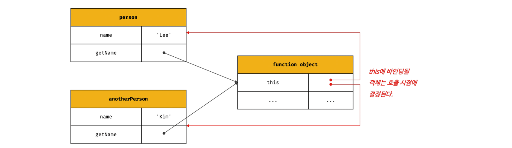 따라서 해당 함수는 다른 객체의 메서드가 될 수도 있고 일반 변수에 할당하여 일반 함수로 호출될 수도 있다.
